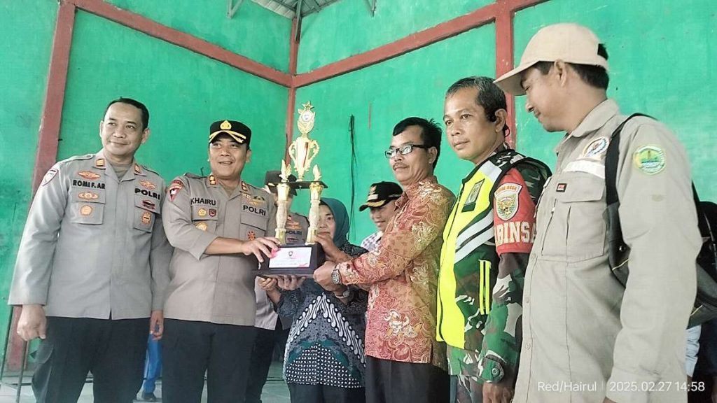 Targetonline.id-PALI – Babinsa Kodim 0404, Suko Wibowo, menghadiri acara penyerahan trofi, sertifikat, dan bantuan sembako kepada Satuan Perlindungan Masyarakat (Satlinmas) Desa Tanjung Dalam yang meraih Juara I dalam lomba Satuan Keamanan Lingkungan (Satkamling) tingkat Polres PALI. Kegiatan ini berlangsung di Balai Serbaguna Desa Tanjung Dalam pada Kamis, 27 Februari 2025.