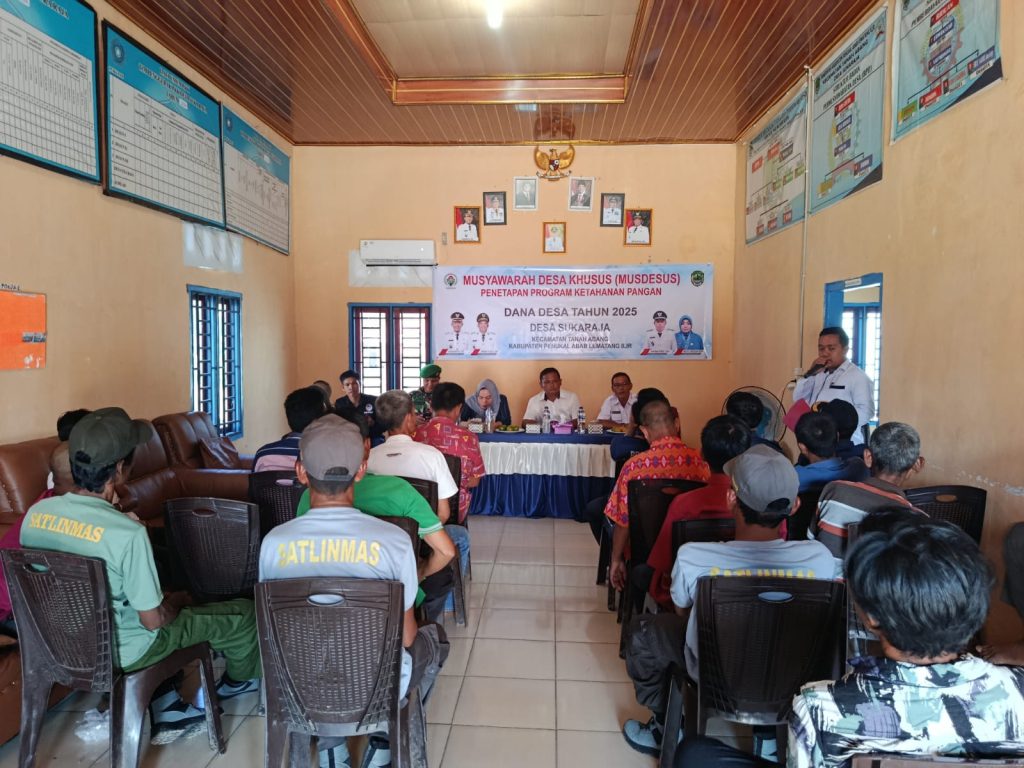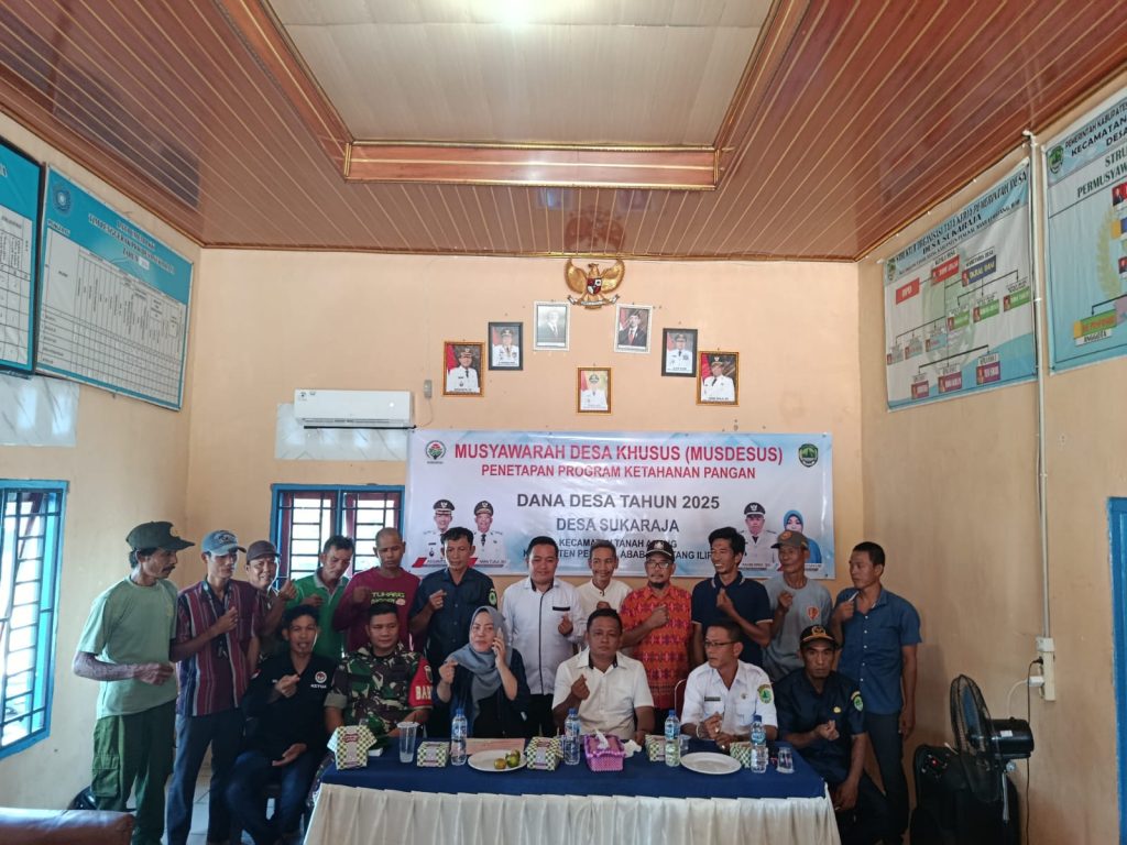 Targetonline.id – PALI, 2 Juli 2025 – Pemerintah Desa Sukaraja, Kecamatan Tanah Abang, Kabupaten Penukal Abab Lematang Ilir (PALI), Sumatera Selatan, menggelar Musyawarah Desa Khusus (Musdesus) guna menetapkan program ketahanan pangan yang akan didanai melalui Dana Desa Tahun 2025. Kegiatan tersebut berlangsung di Kantor Kepala Desa Sukaraja pada Selasa, 2 Juli 2025.