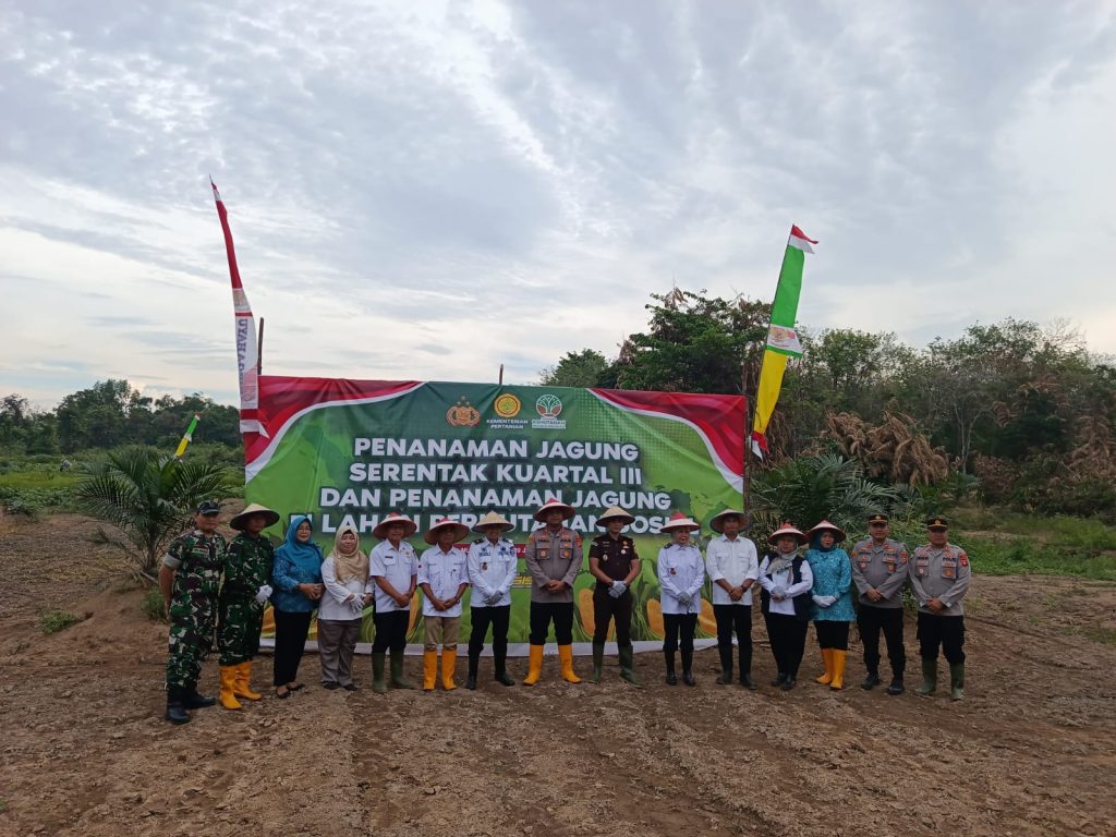Targetonline.id – PALI, 9 Juli 2025 – Dalam rangka mendukung program ketahanan pangan nasional, Polres Penukal Abab Lematang Ilir (PALI) bersama Pemerintah Kabupaten PALI melaksanakan penanaman jagung kuartal III di Desa Muara Sungai, Kecamatan Tanah Abang, Rabu (9/7/2025). Kegiatan ini dilakukan serentak secara nasional dan diawali dengan video conference yang diikuti seluruh jajaran kepolisian dan pemerintah daerah di Indonesia.