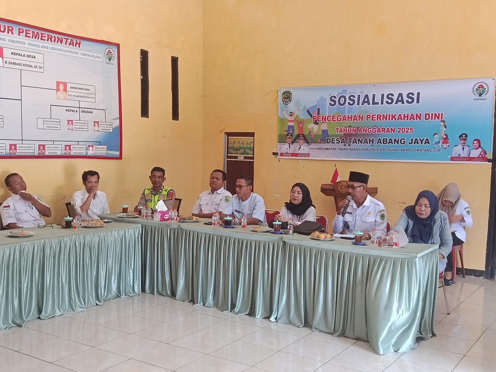 PALI, Targetonline.id – Pemerintah Desa Tanah Abang Jaya, Kecamatan Tanah Abang, Kabupaten Penukal Abab Lematang Ilir (PALI), Sumatra Selatan menggelar kegiatan sosialisasi pencegahan pernikahan dini di Kantor Kepala Desa Tanah Abang Jaya, Rabu (30/7/2025). Kegiatan ini merupakan bagian dari program tahun anggaran 2025 dalam rangka meningkatkan kesadaran masyarakat terhadap dampak negatif pernikahan usia anak.