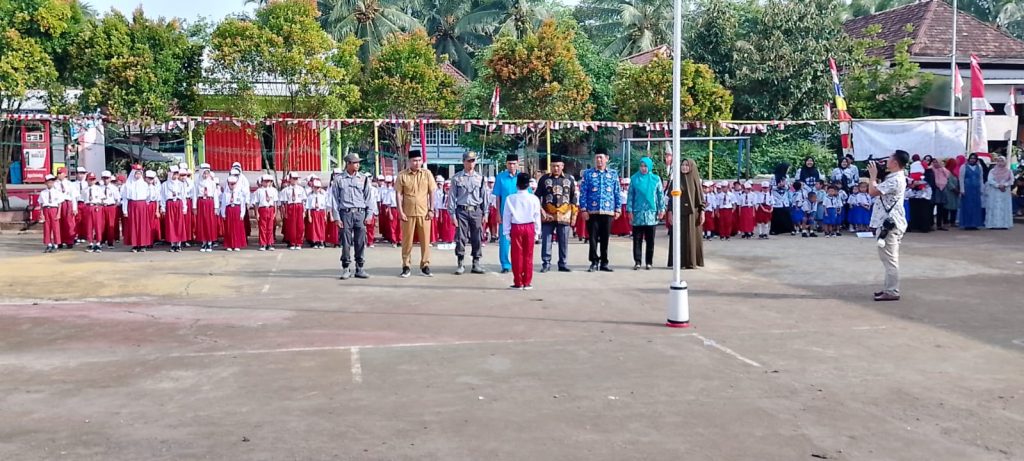 Prosesi upacara berjalan tertib dengan pengibaran bendera Merah Putih oleh pasukan pengibar bendera dari pemuda desa. Lagu kebangsaan Indonesia Raya dinyanyikan dengan penuh semangat, menciptakan suasana haru dan kebanggaan.