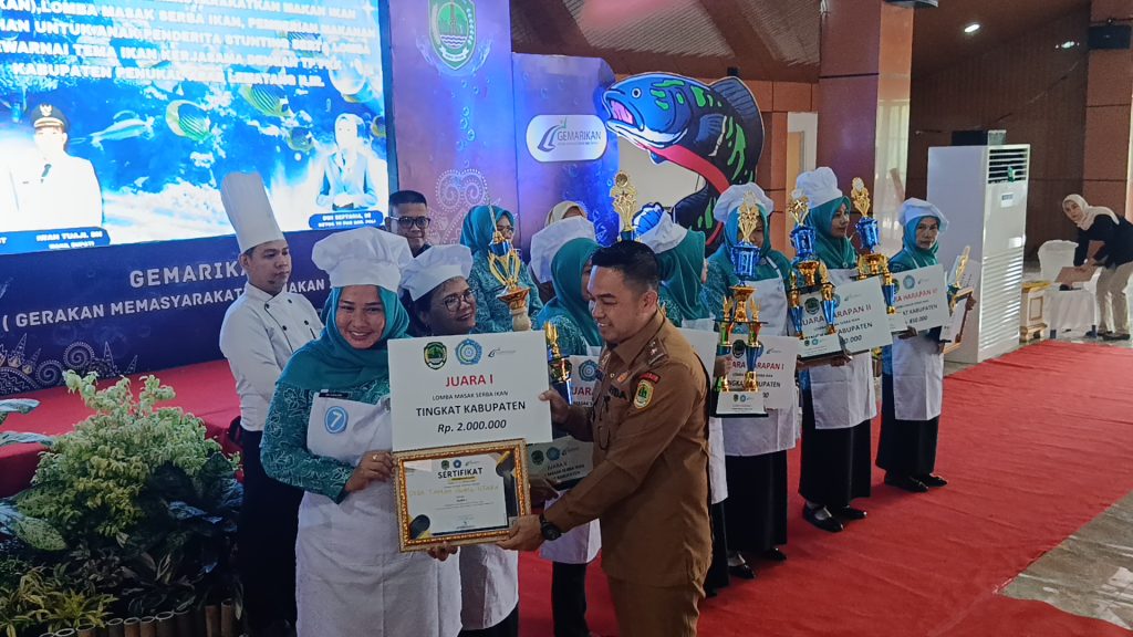 PALI, 30 September 2025 – Tim Penggerak PKK Desa Tanah Abang Utara, Kecamatan Tanah Abang, berhasil meraih Juara I pada Lomba Masak Serba Ikan tingkat Kabupaten Penukal Abab Lematang Ilir (PALI) yang digelar di Pendopoan PALI, Selasa (30/9/2025). Kegiatan ini diselenggarakan oleh Dinas Perikanan Kabupaten PALI bekerja sama dengan TP PKK Kabupaten sebagai bagian dari program nasional GEMARIKAN (Gerakan Memasyarakatkan Makan Ikan).