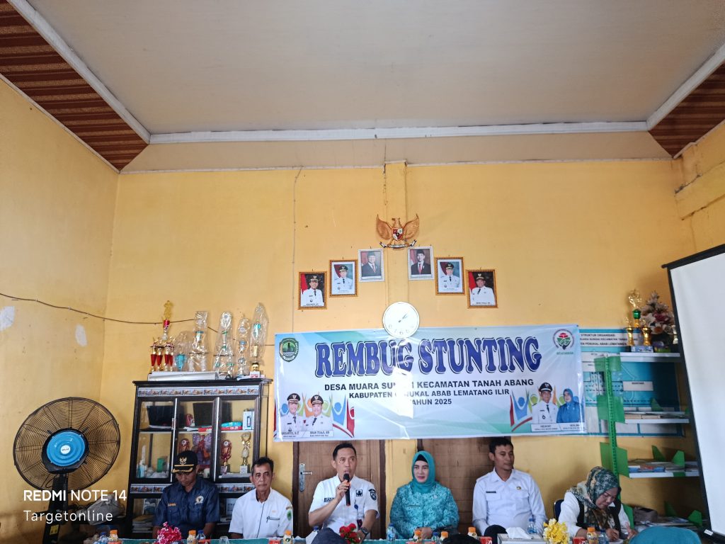 PALI Targetonline.id – Camat Tanah Abang, Dadang Afriandy, SH., M.Si, bersama Ketua TP PKK Kecamatan Tanah Abang, Sri Utami Dadang, AMKP, menghadiri kegiatan Rembug Stunting yang digelar Pemerintah Desa Muara Sungai, Rabu (8/10/2025). Acara berlangsung di ruang kantor Kepala Desa Muara Sungai, Kecamatan Tanah Abang, Kabupaten PALI, dengan dihadiri berbagai unsur pemerintah desa, lembaga desa, perangkat kecamatan, tenaga kesehatan, serta masyarakat.