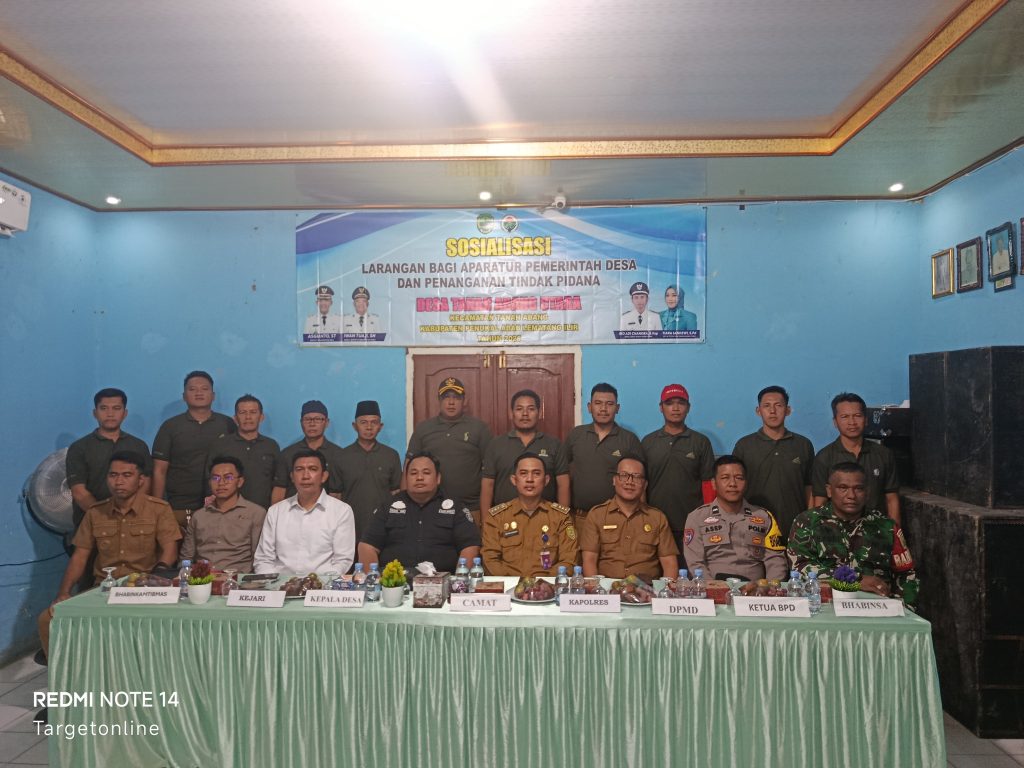 PALI Target online.id – Pemerintah Kecamatan Tanah Abang menggelar Sosialisasi Larangan Bagi Aparatur Pemerintah Desa serta Penanganan Tindak Pidana dan Program Pendampingan Hukum di Kantor Kepala Desa Tanah Abang Utara, Kabupaten Penukal Abab Lematang Ilir (PALI), pada Selasa 28 Oktober 2025. Kegiatan ini dibuka langsung oleh Camat Tanah Abang, Dadang Afriandy, SH., M.Si, sebagai upaya pencegahan dini terhadap potensi pelanggaran hukum dalam penyelenggaraan pemerintahan desa.