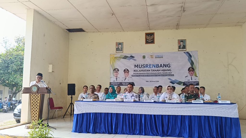 Camat Tanah Abang, Dadang Afriandy, SH., M.Si, menyampaikan bahwa Musrenbang merupakan forum strategis untuk menyelaraskan kebutuhan masyarakat desa dengan arah kebijakan pembangunan daerah. Ia menegaskan, Pemerintah Kecamatan Tanah Abang berperan sebagai penghubung antara desa dan pemerintah kabupaten agar aspirasi masyarakat tidak berhenti di tingkat perencanaan.