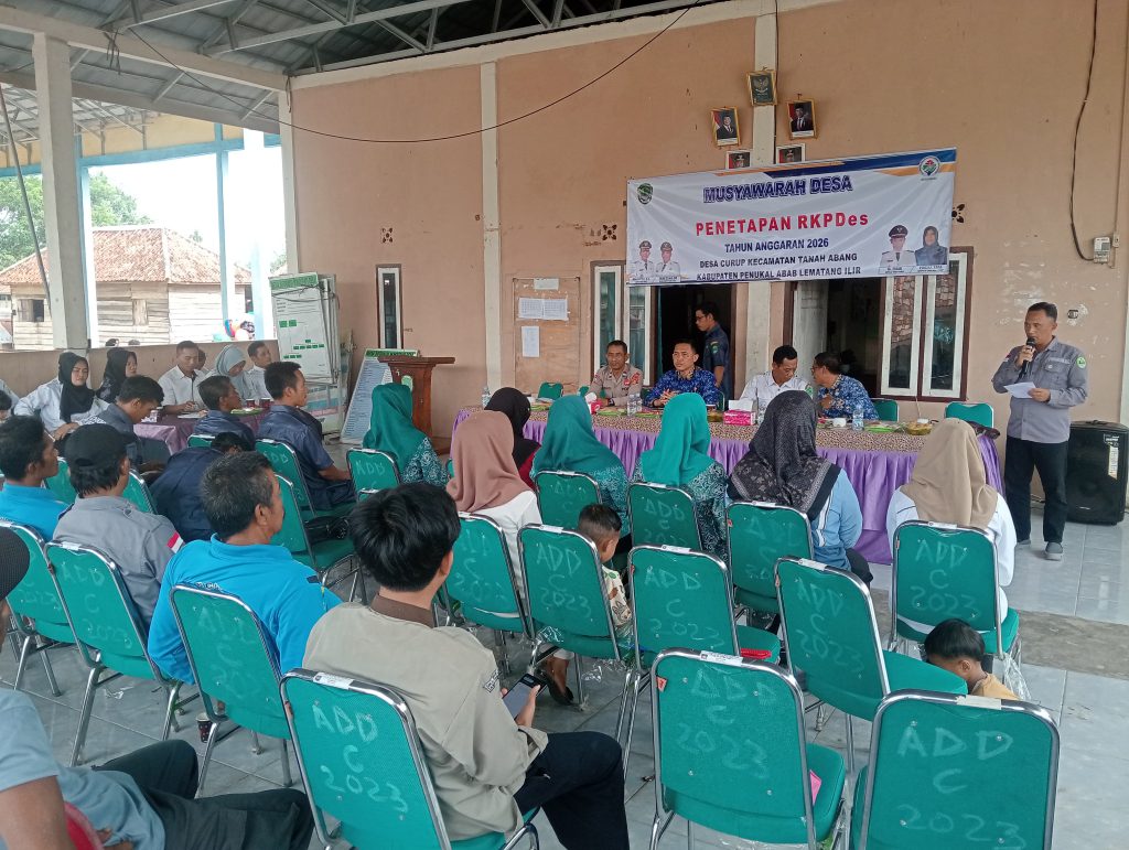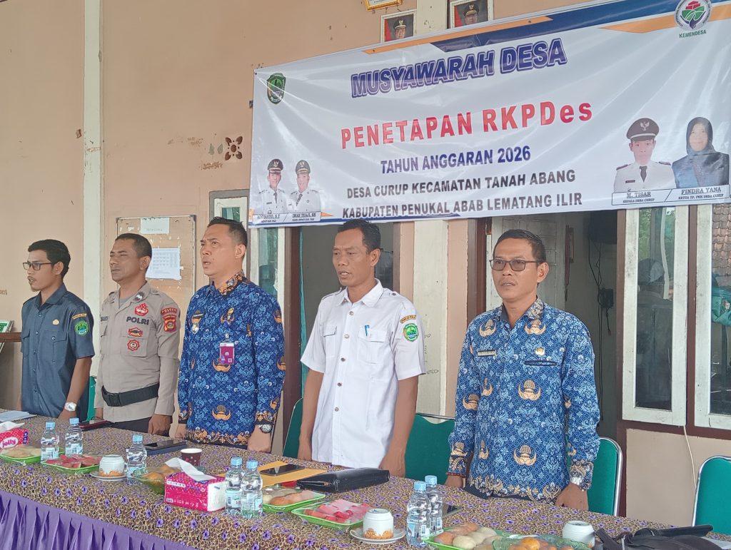 PALI Targetonline.id – Pemerintah Desa (Pemdes) Curup, Kecamatan Tanah Abang, Kabupaten Penukal Abab Lematang Ilir (PALI), resmi menetapkan Rencana Kerja dan Anggaran Pendapatan Desa (RKAPDes) Tahun Anggaran 2026. Kegiatan berlangsung di kantor kepala desa Curup pada Rabu (17/9/2025) dengan dihadiri unsur pemerintah kecamatan, perangkat desa, serta elemen masyarakat.